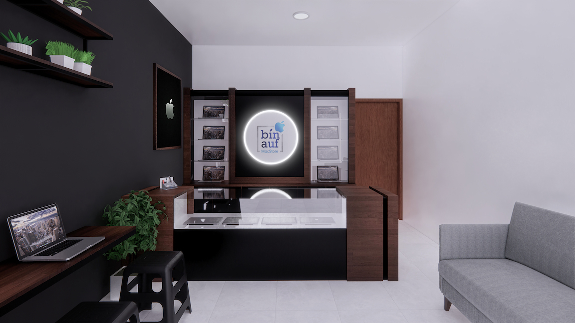 Terlalu banyak ornamen pada toko akan membuat para pembeli kurang merasa nyaman. Namun jika dibuat minimalis akan lebih terlihat elegan. Seperti desain toko elektronik karya azkarya ini :